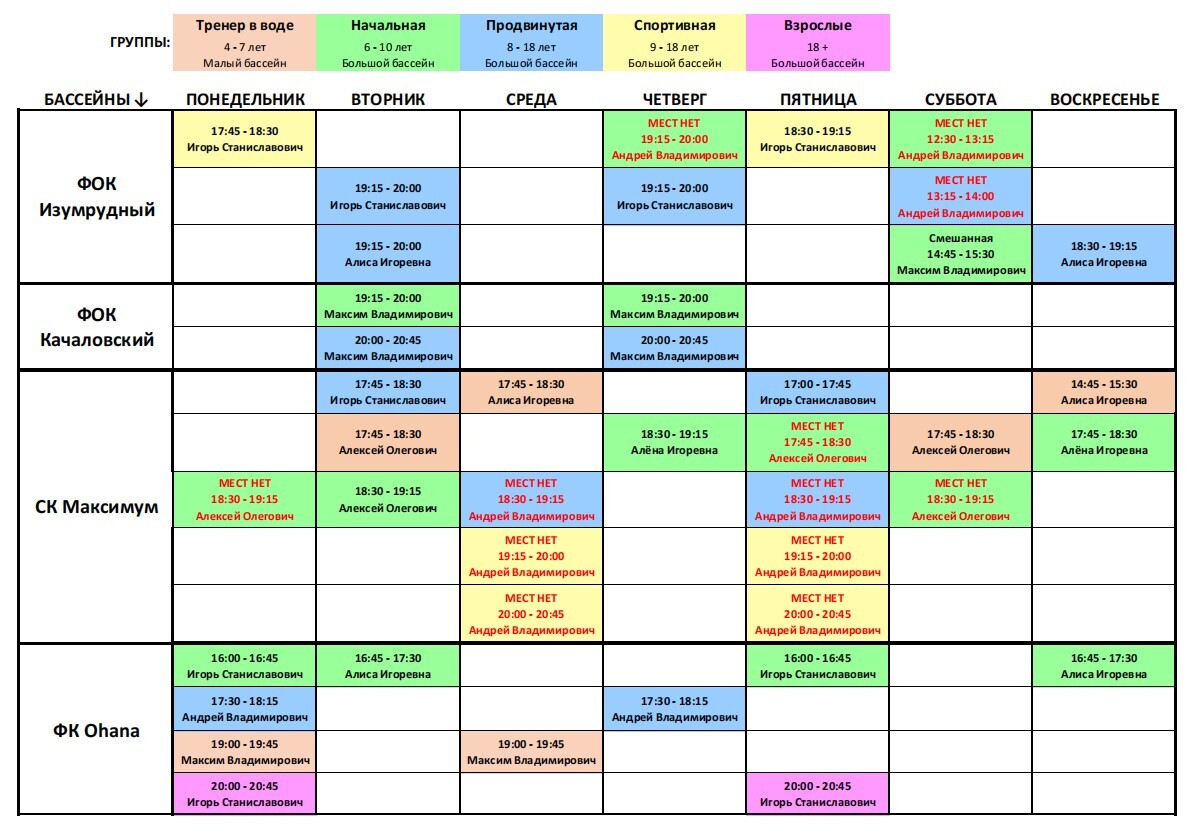 Наши локации и расписание